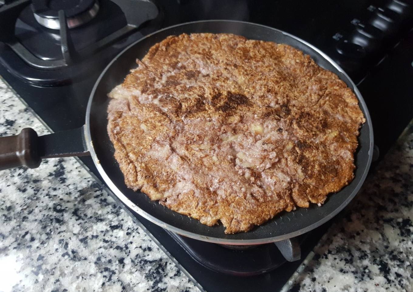 - Rallar la manzana comenzar a tratar de unir bien. Si fuera necesario agregar algo de líquido puede ser agua o leche vegetal, yo no precise porque la manzana era bien jugosa y se integró todo bien. Calentar una panquequera o sartén, aceitar apenas y colocar la mezcla. Cocinar a fuego lento unos minutos
